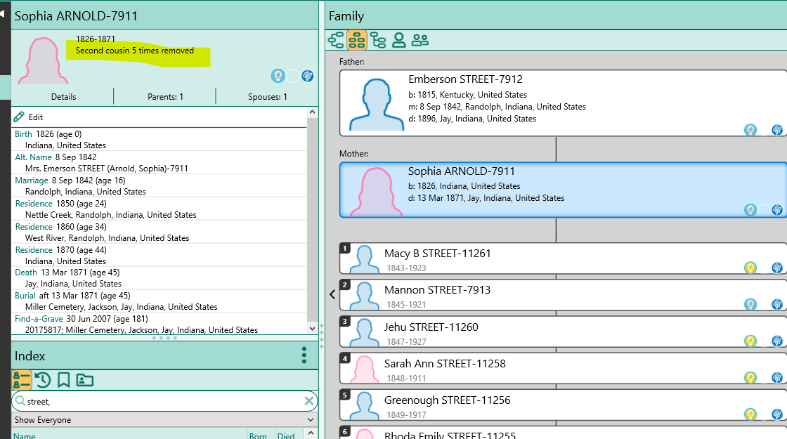 Certainly is confusing. The video will make more sense of this. Essentially, cousins are not always displayed in the box. Unless they have a spouse. However, in my example the spouse has not bearing on the relationship. Both parents only married once. (windows 10, RM 8.1.8)
